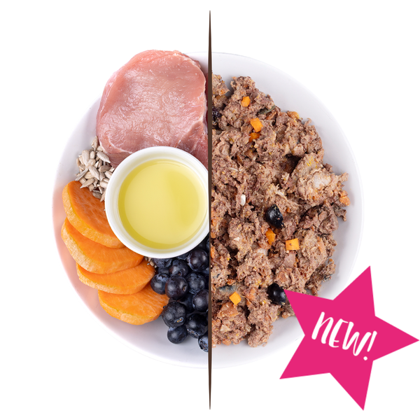 Composición: Carne de jabalí (55%), zanahoria (16,8%), hígado de cerdo (7%), corazón de cerdo (5%), pulmón de cerdo (4,5%), bazo de cerdo (3,5%), boniato (2,4%), arándanos rojos (2%), semillas de girasol, coco, champiñones (0,5%), cáscara de huevo, semillas de calabaza, aceite de hígado de bacalao, algas marinas (ascophyllum nodosum), germen de trigo sarraceno